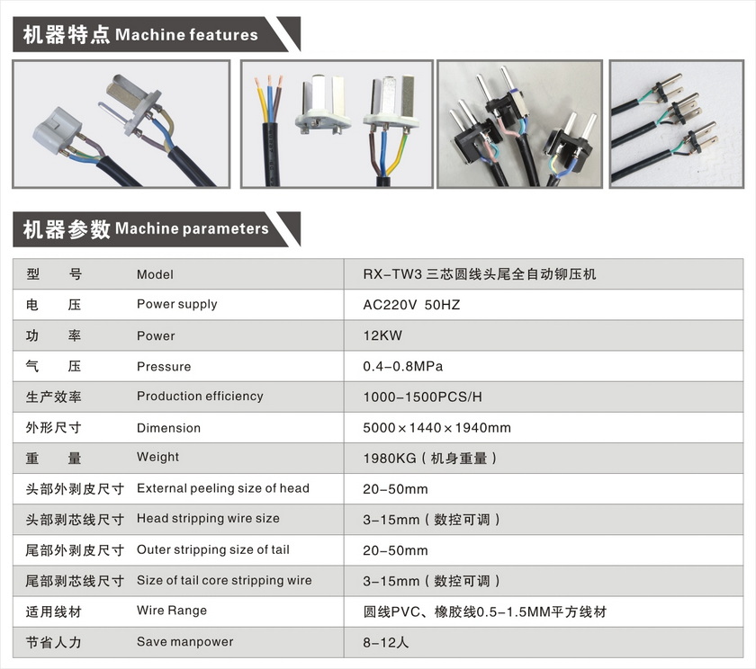 RX-TW3 三芯圆线头尾全自动铆压机