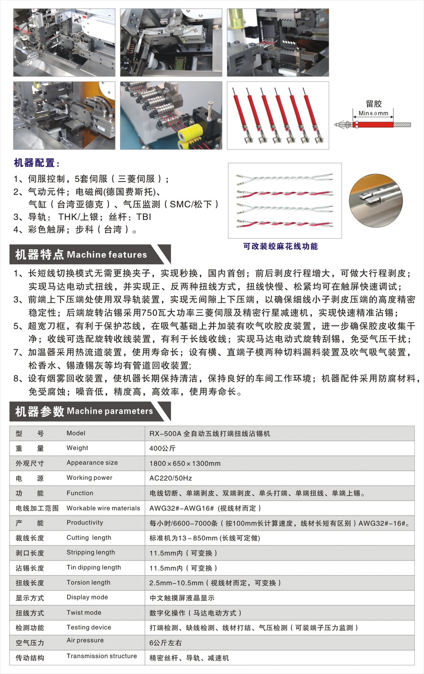 RX-500A 全自动五线打端扭线沾锡机